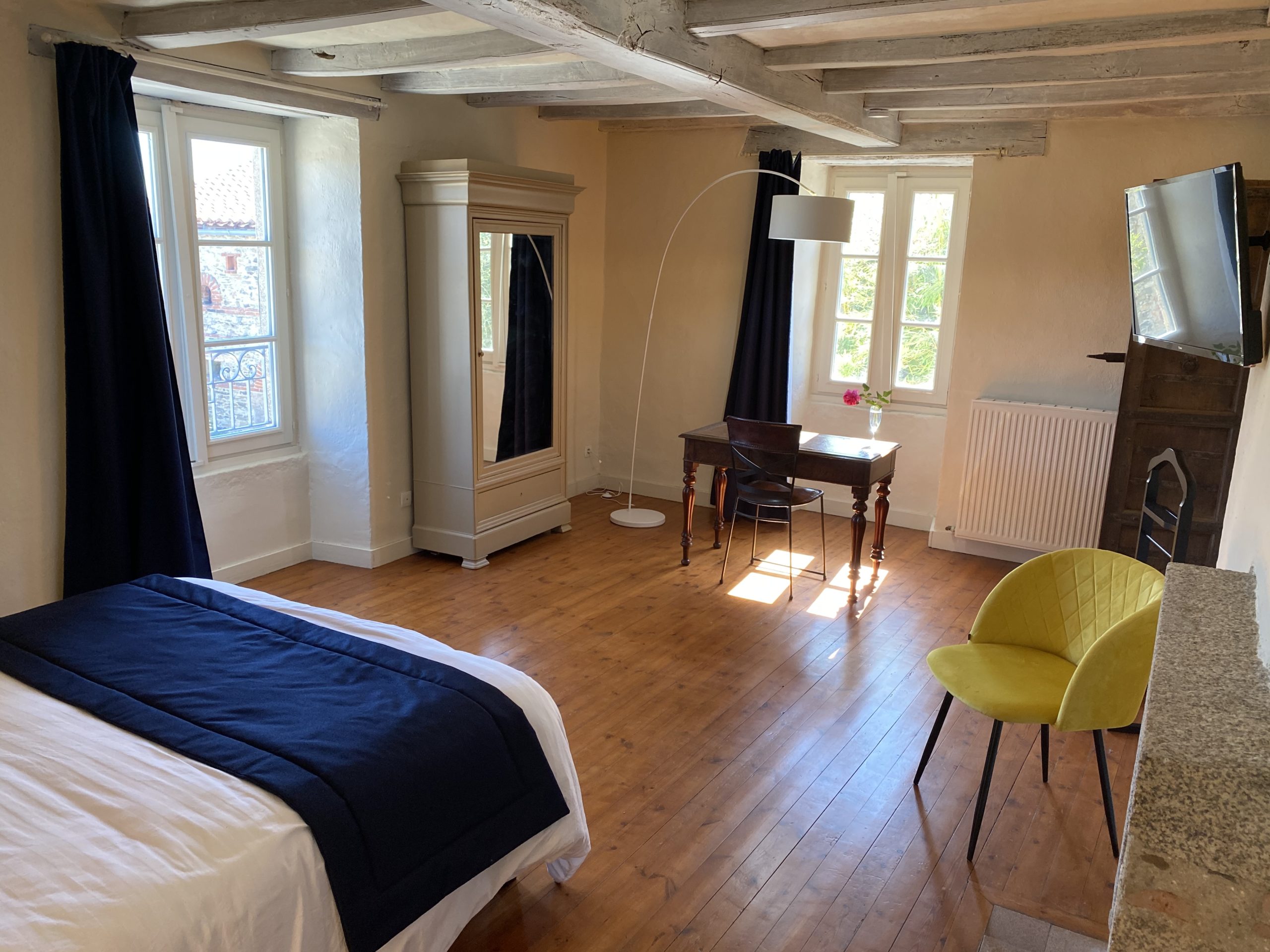 La chambre Morphée ravira les amateurs de nature et d’authenticité. Lumineuse et romantique, cette chambre de 32 m² est située au 1er étage. Elle est équipée d’un lit Queen size (160×200), d’une télévision et d’une salle de bain avec douche et baignoire. Possibilité d’installer un lit bébé à la demande.